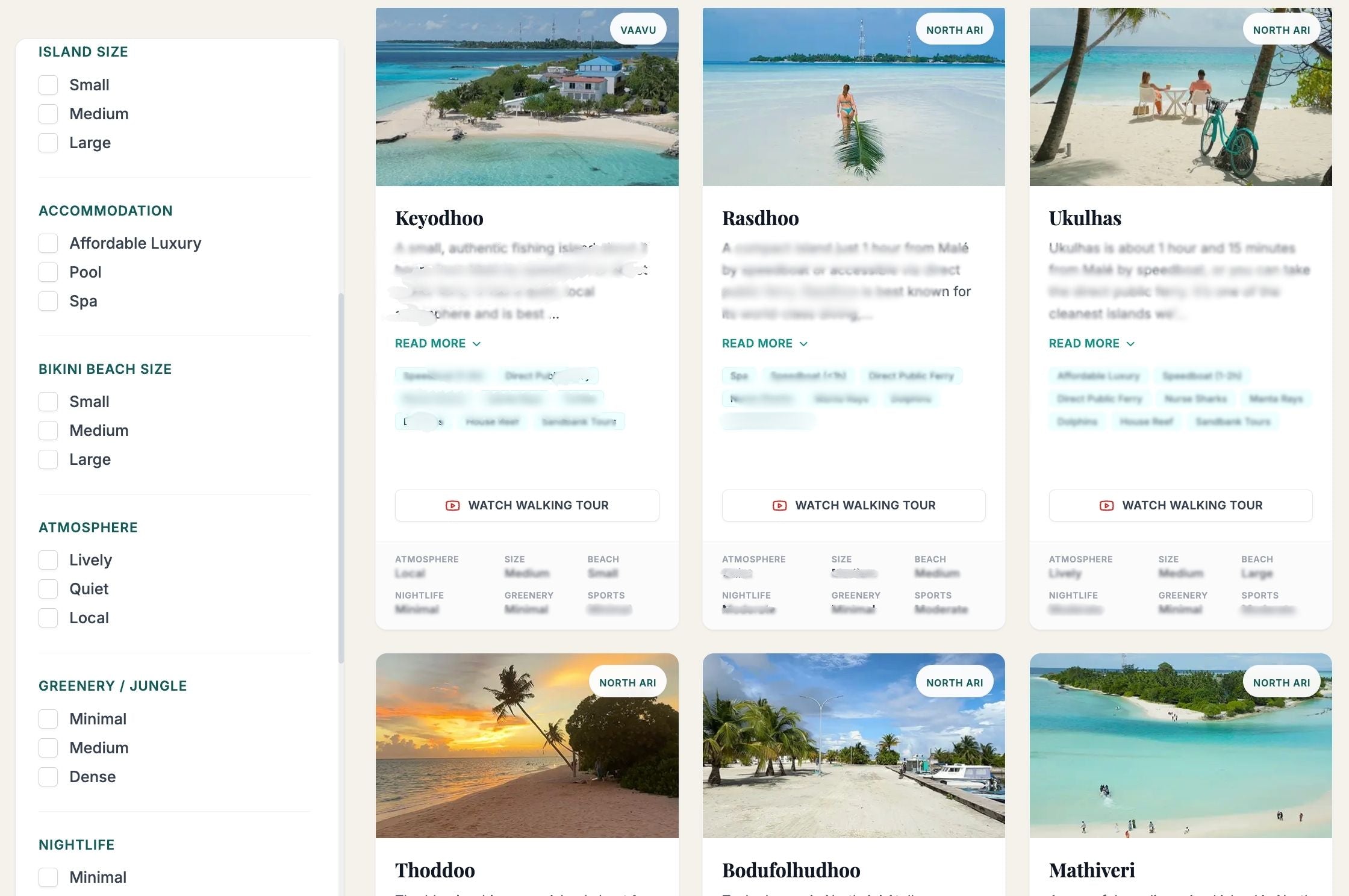 Instead of researching endlessly, the Island Finder lets you filter and compare 30 local islands based on the things that actually matter for your trip.